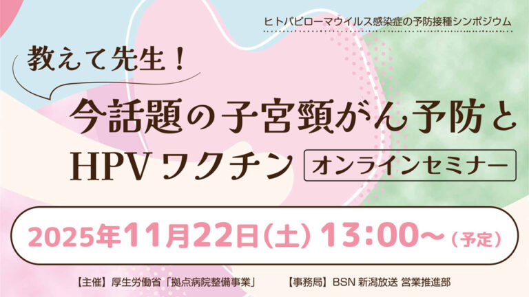 ヒトパピローマウイルス感染症の予防接種シンポジウム「教えて先生!今話題の子宮頸がん予防とHPVワクチン [オンラインセミナー]」【アーカイブ公開中!】